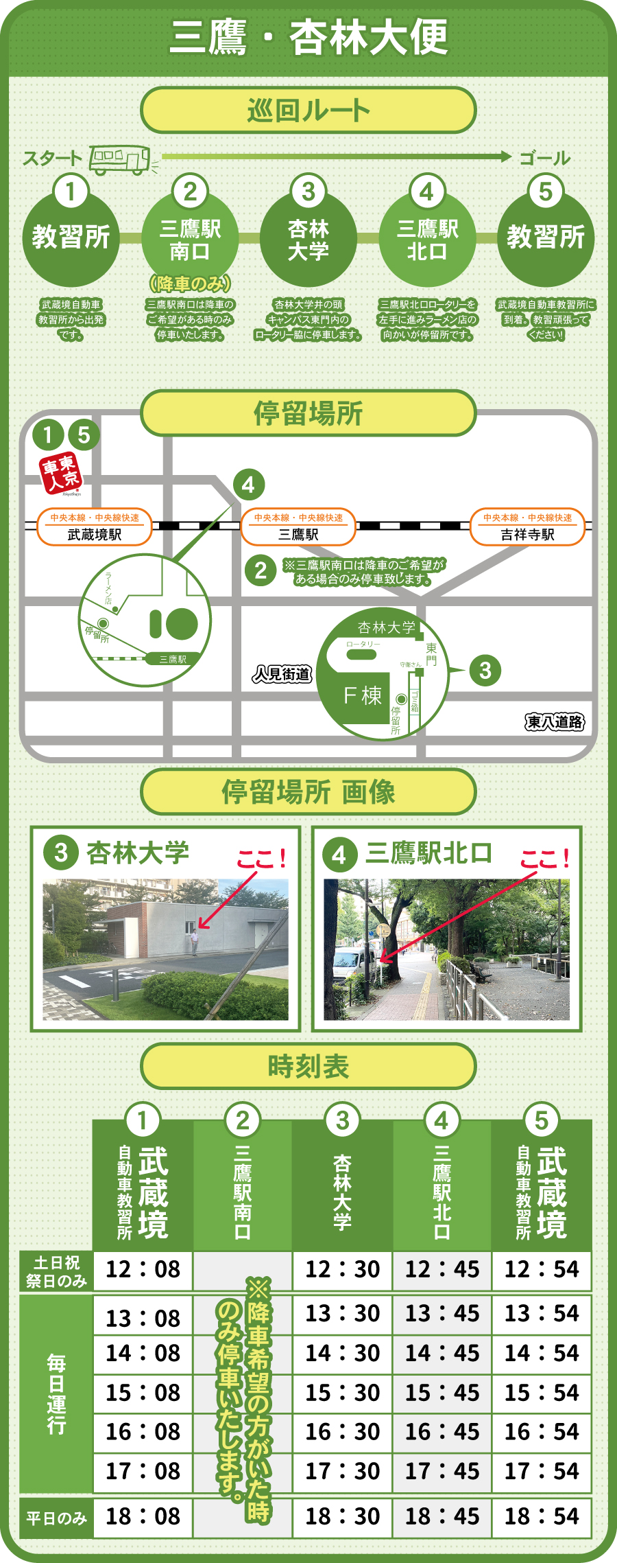 3分前までには停留所でお待ち下さい。