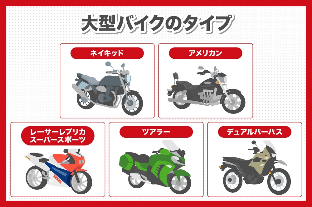 ただ、大型バイクは特性ごとにタイプが分けられるため、どんなふうに乗りたいのかハッキリしていれば、きちんと自分にあったものが選べます。
