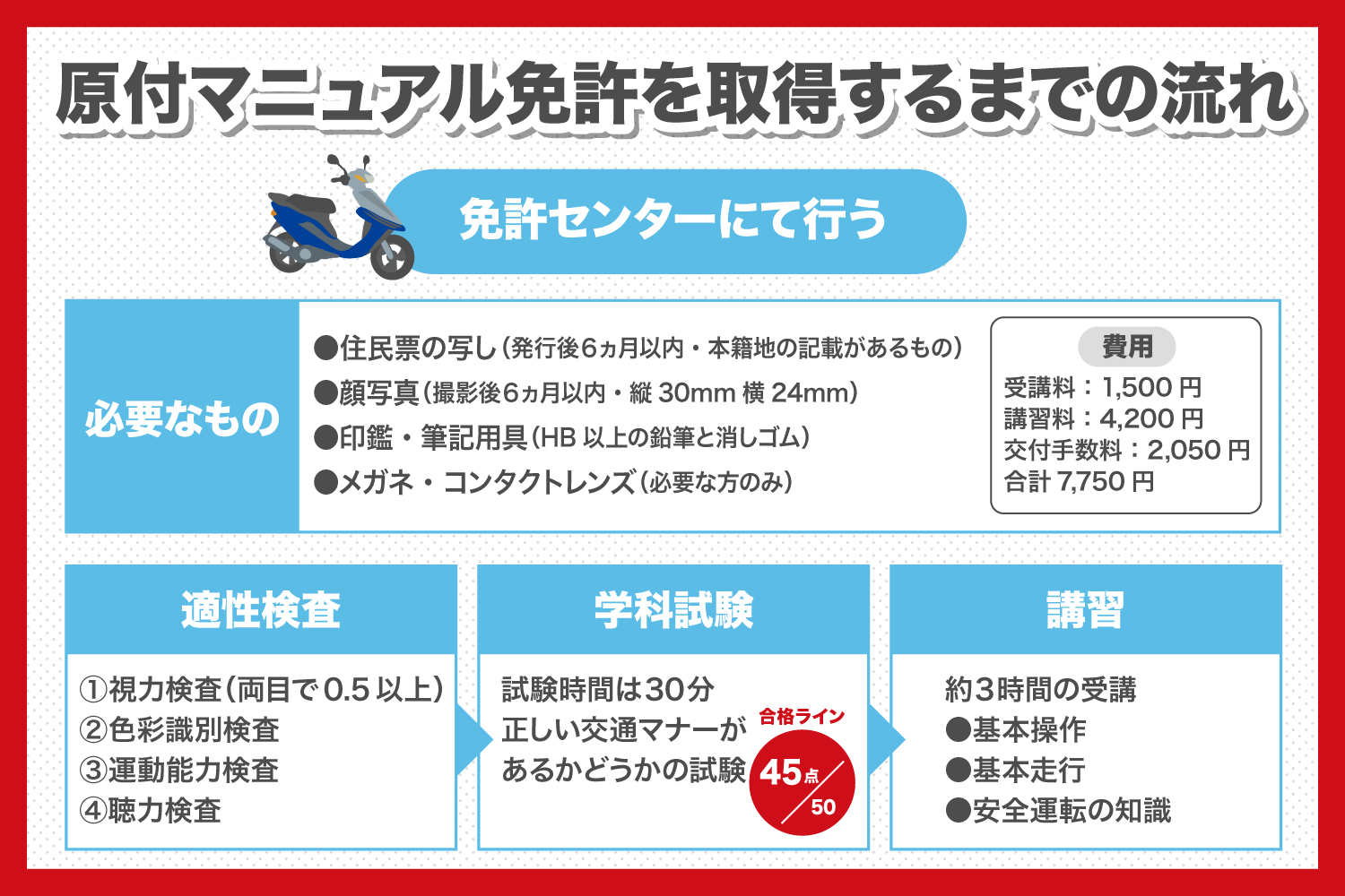 ここでは原付免許の基本情報や取得方法について解説していきます。