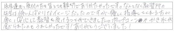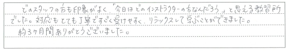 対応もとても丁寧ですごく受けやすく、リラックスして学ぶことができました。
